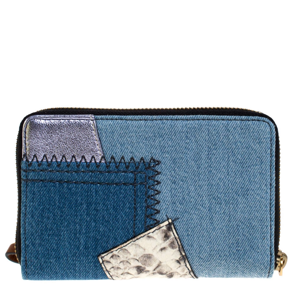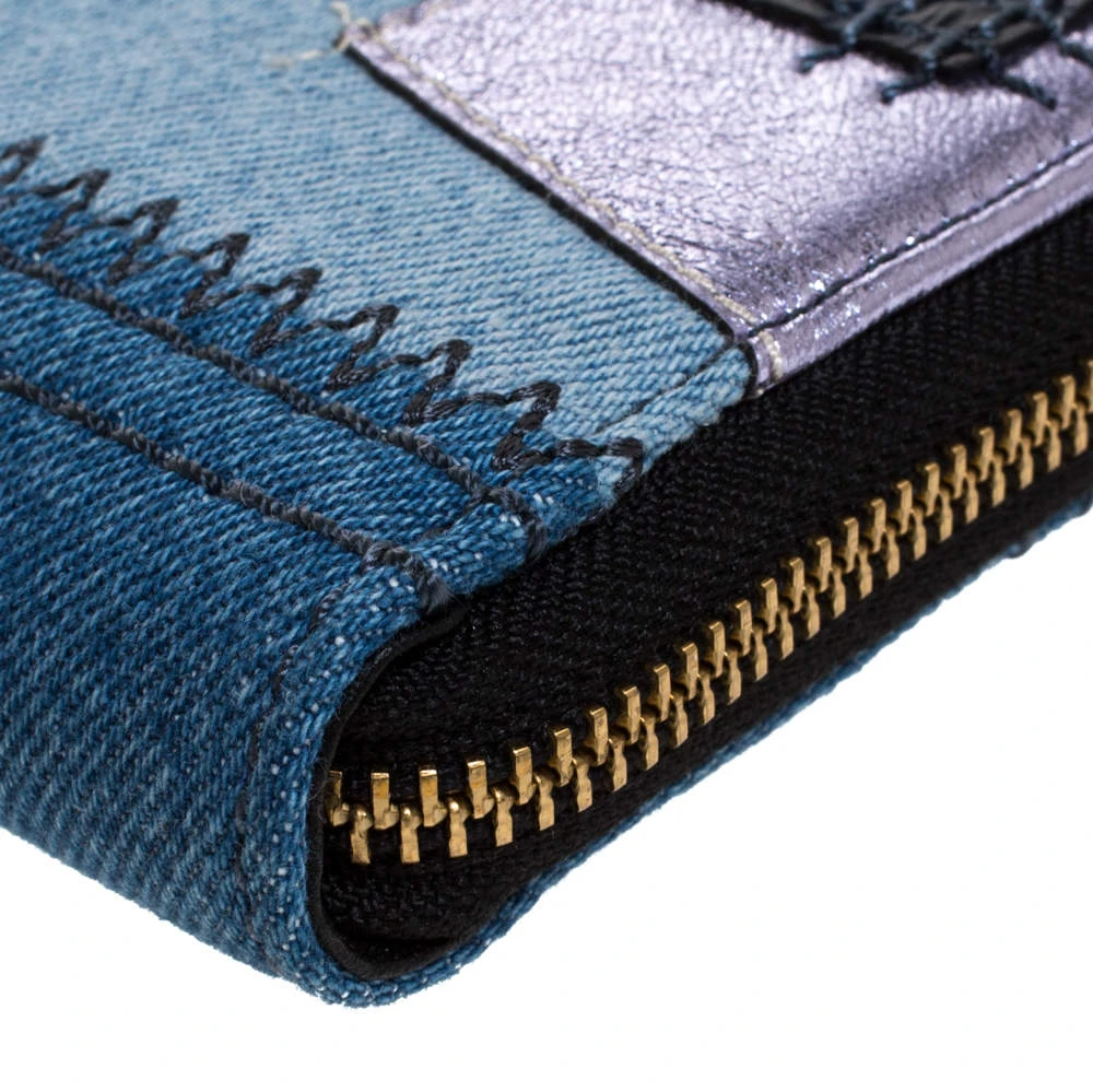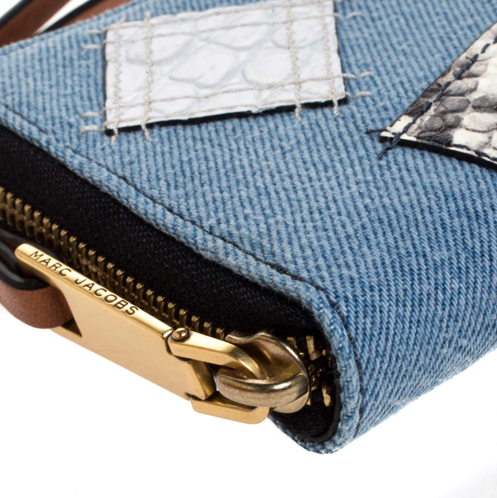 Marc Jacobs Blue Denim Patchwork Zip Around Wallet For Women